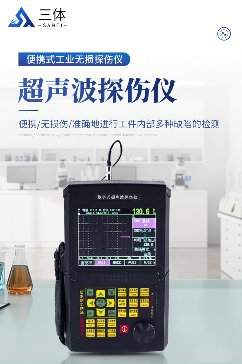 超声波探伤仪是一种便携式工业无损探伤仪,它能够便携、无损伤、准确地进行工件内部多种缺陷(裂纹、疏松、气孔、夹杂等)的检测、定位、评估和诊断。既可以用于实验室,又可以用于工程现场。应用在锅炉、压力容器、航天、电力、石油、化工、海洋石油、管道、船舶制造、汽车、机械制造、冶金、金属加工、钢结构、铁路交通、核能电力、高校等行业。