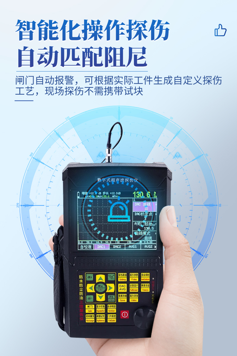 ● 自动匹配阻尼,智能化操作探伤,闸门自动报警;