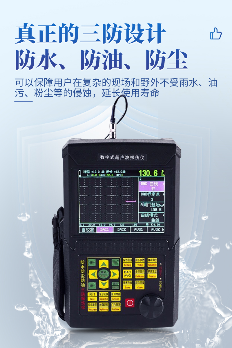 ● 具有防水、防油、防尘三防功能,使用寿命延长,是常规探伤仪使用寿命的几倍。