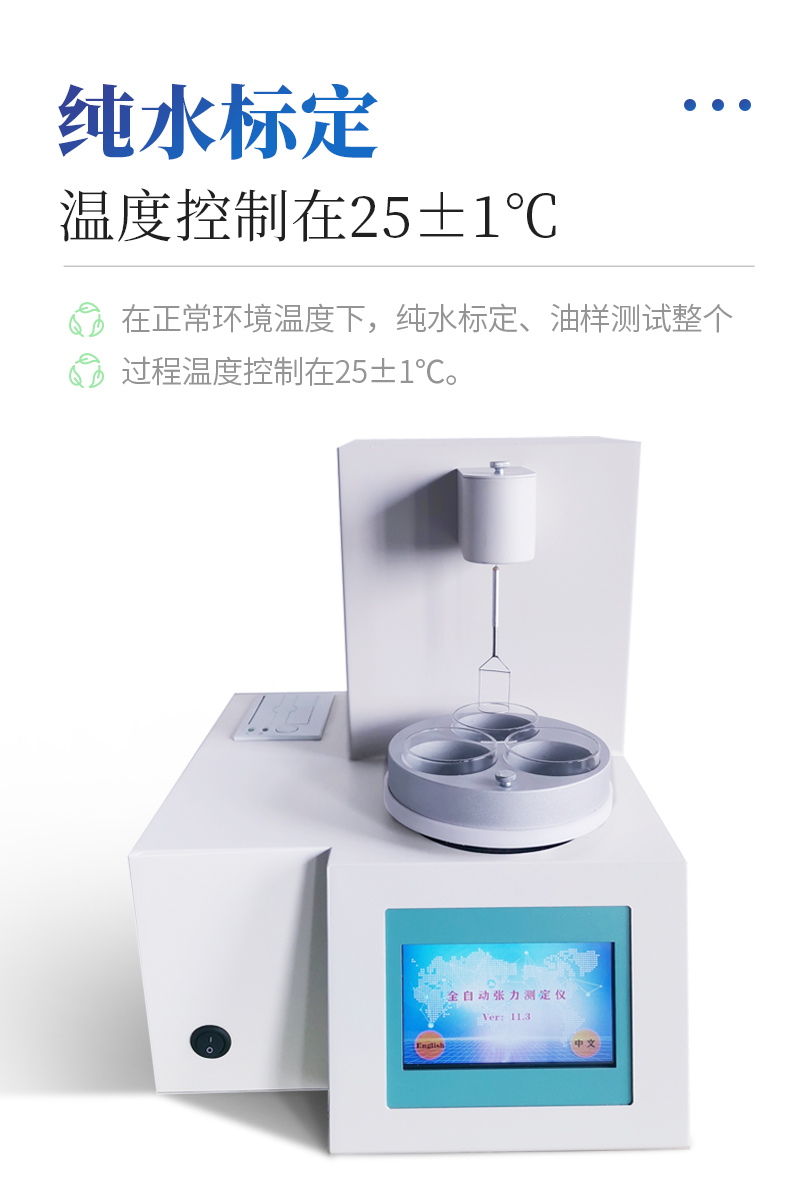 ★ 在正常环境温度下,纯水标定、油样测试整个过程温度控制在25±1℃。